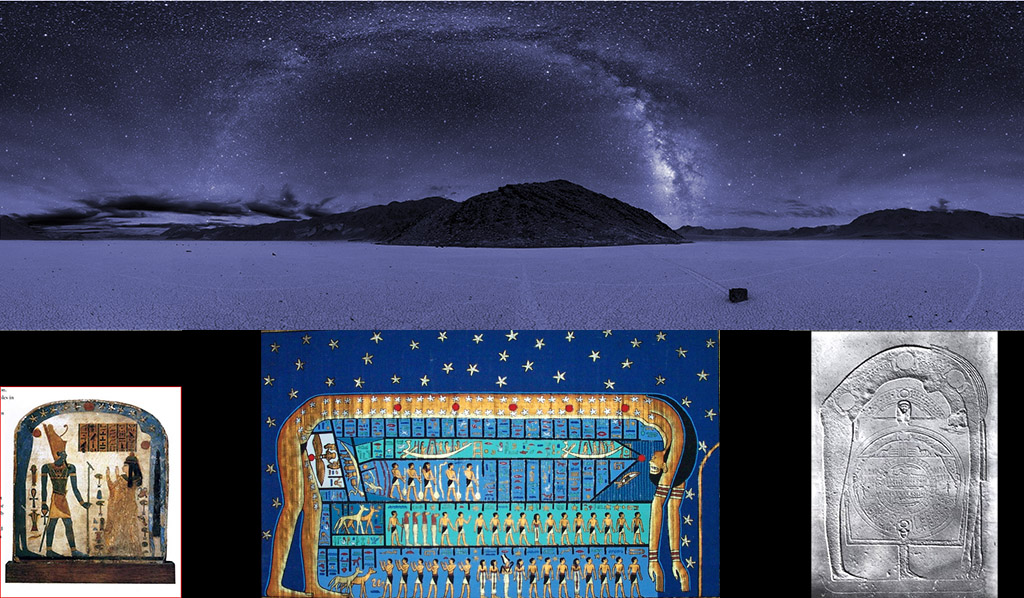 “… in the predawn sky at winter solstice in predynastic Egypt the Milky Way would have looked remarkably like a stretched out figure with arms and legs touching the horizons in exactly the manner in which the goddess was often later depicted. Furthermore, at the time of the winter solstice the sun would have risen in the area of the goddess’s figure – her pudendum – from which it would be imagined to be born, just as nine months earlier, at the spring equinox, the sun would have set in the position of the goddess’s head – suggesting it was being swallowed.”