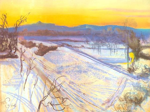 “We begin at the southern gate, crowned with the majesty of Christmas. There the Sun enters upon its northward journey — a journey which has been described by seers and poets in beautiful symbolism, for it brings to men, and to all that lives, the great hope of rebirth and self-renewal…. The sun lies low in the southern skies; but the miracle of winter light as it caresses the hills white with silence and with peace is hardly to be described. Only those who have lived where pale skies pour molten white gold over horizons glistening white under the robe of the snow can know the magic of a light reflected by an earth so pure that it actually seems the source of light drenching a darker sky.”