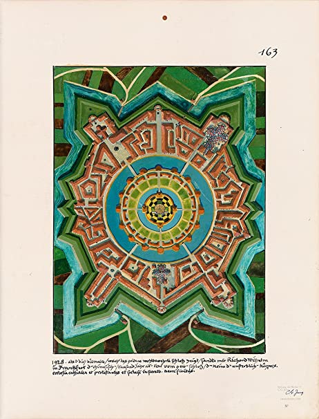 To be alive, one needs to stand for something, as well as constantly try and overcome the opposites. Satan helps Jung realize what the difference is between the life of eternity, which is always at a standstill and where opposites are united and a personal life, which “bubbles and foams and stirs up turbulent waves,” The image 163 accompanying the text depicts a golden castle, whose centre is a golden temple. The castle is surrounded by lush greenery, symbolic of vibrant plant life. The chess floor in the centre stands for the unification of the opposites.