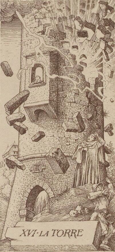 They gift Jung the sword so that he can disentangle himself from the maze created by his brain and move beyond the madness of overthinking towards feeling and being in touch with the lower nature. Thanks to the Cabiri, Jung is now able to build a tower that no one can bring down. The Cabiri had to be sacrificed with a sword to build it; they consecrated the construction with their own blood. Jung says that the tower can only be reached by the one who finds “the entrance hidden in the mountain and rises up through the labyrinths of the innards.”