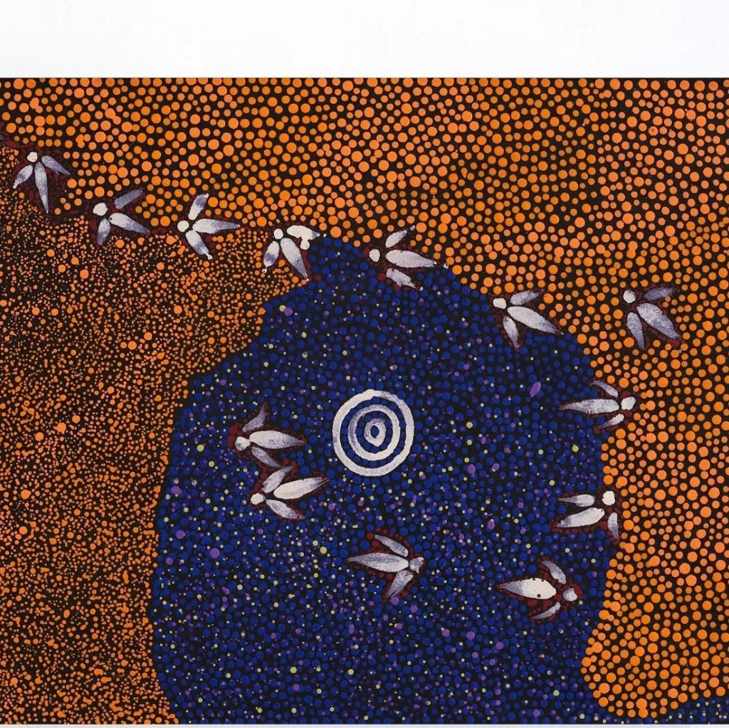 “In the night sky, the white cockatoo is represented by the star Fomalhaut, which appears in the northeast in late July, heralding a change in seasons. It is also a part of a celestial songline that begins with the Creation Dog in the north and stretches across the sky to include the stars of the Rock Cod, Eagle, the Big Law Place, Red Ant Doctor, White-Faced Grass Wallaby, and Catfish Law, and ends with the Bats in the southern sky. The Bats, the constellation the Greeks called the Pleiades, represent the children and teenagers who will be initiates. By following this celestial sequence of stars, one would have been able to navigate to the traditional place of the ceremonies.”