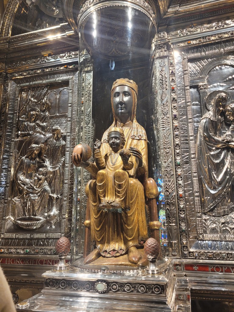 Each pilgrim has a chance to come face to face with the holy image of the Black Madonna of Montserrat, granted they possess the patience to endure a lengthy queue. However, there’s a brief yet intimate moment when visitors can stand in close proximity to the statue, albeit behind glass. The globe held by the figure, however, remains exposed, inviting everyone to touch it.