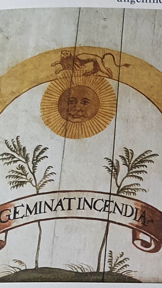 Izdubar had become one with the Sun; like the Sun he now sees all and knows all. (1) Like the Sun, he had made a night journey into the depths of the nadir and has ascended towards the zenith, symbolizing his perpetual renewal. (2) Izdubar now emits a radiant light that Jung’s eyes “cannot grasp.” Jung compares himself to the mother, who had given birth to a god: